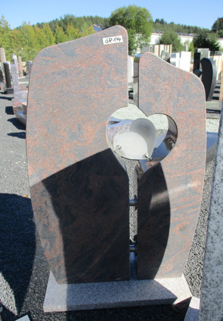 Grabstein in Nordisch Quarzit, (poliert, 2-tlg. mit Glasornament)