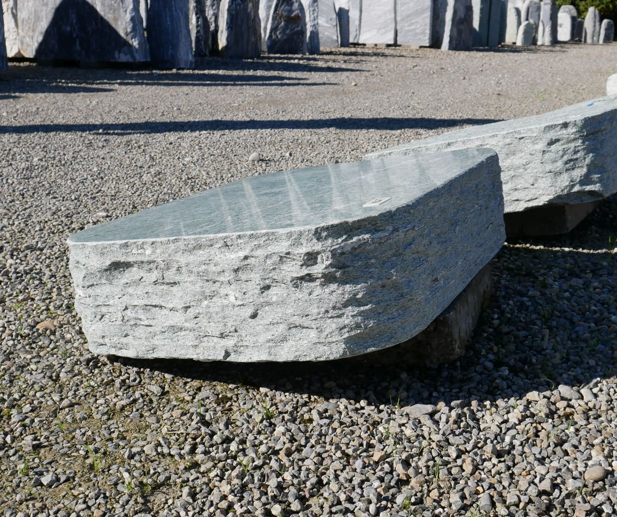 Andeer-Liegestein, oben poliert (Kanten gesprengt)