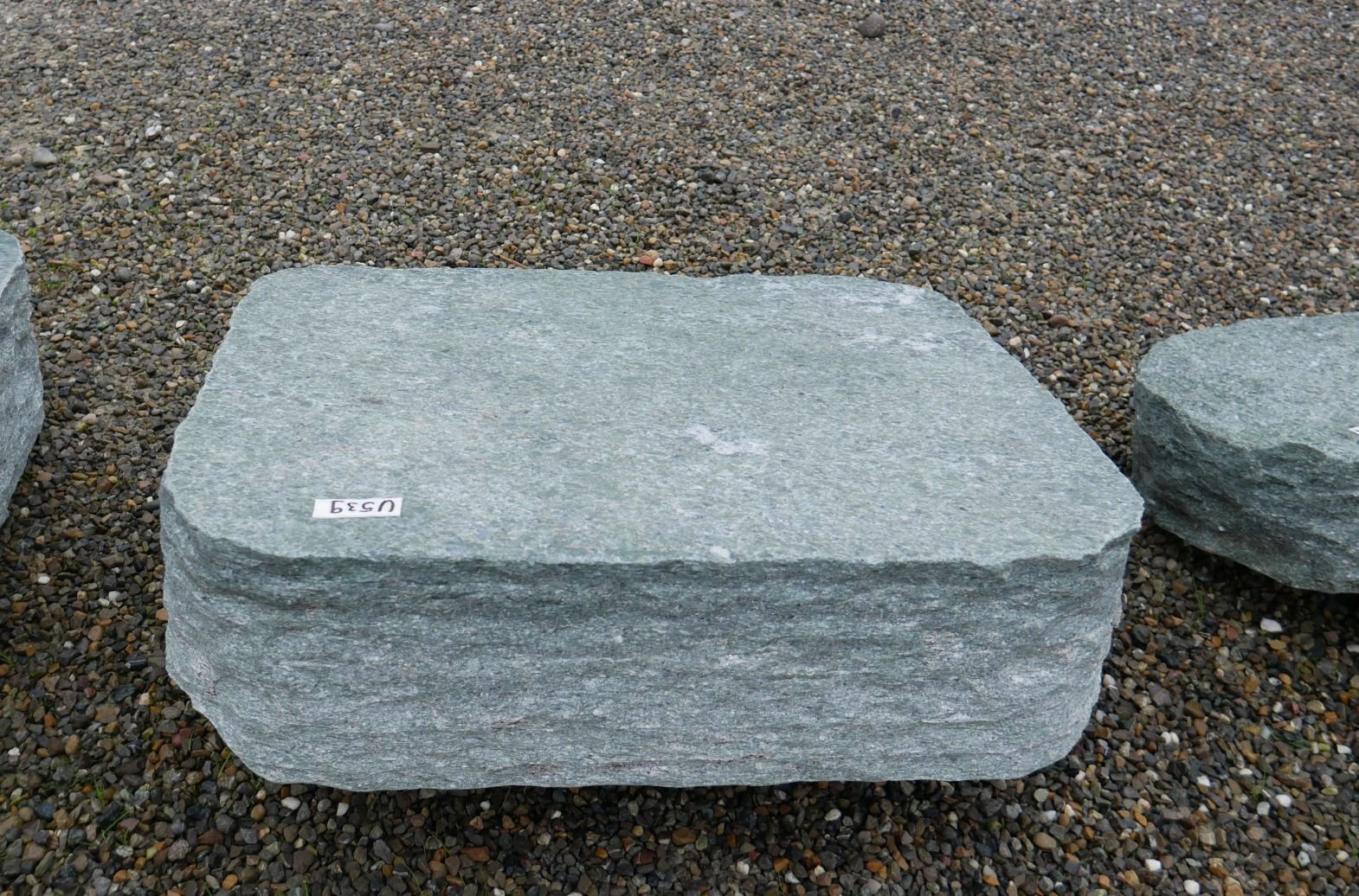 Andeer-Liegestein, oben geflammt (Kanten gesprengt)